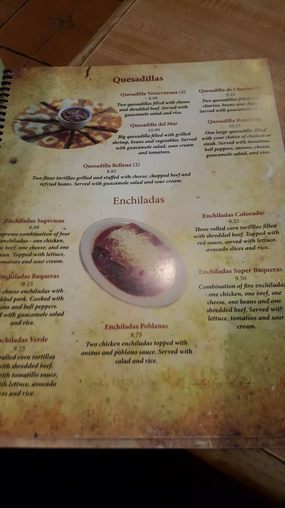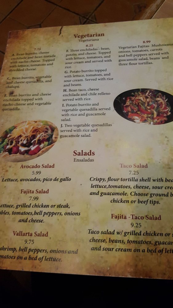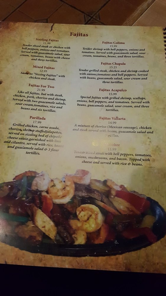 Tender sliced steak or chicken with bell peppers, red peppers, onions and tomatoes. Served with guacamole salad, sour cream, tomatoes, beans with cheese and three tortillas.
